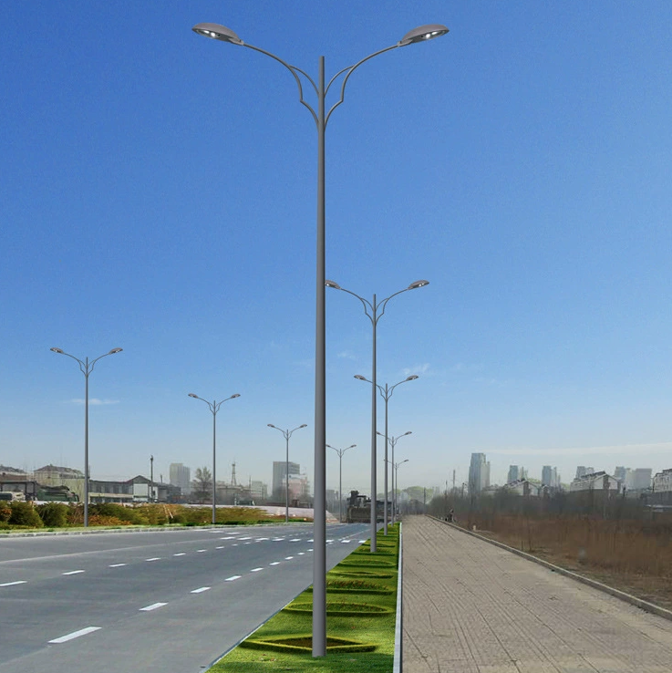 LED street light poles with single/double arms, 8-12m height options.